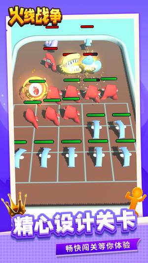 火线战争是结合跑酷、策略与塔防元素的创新型3D休闲竞技类游戏。玩家将在充满陷阱与敌人的赛道中操控角色奔跑,通过收集同类单位、合成强化来提升队伍战力,并在关键节点部署战术防线,最终击败敌人赢得胜利。