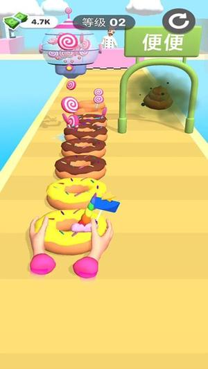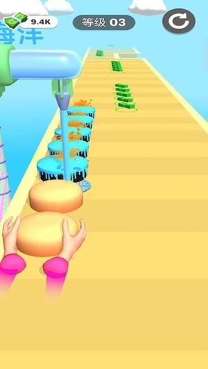 4、抵达终点前需完成指定工序目标,如添加奶油、撒糖珠等,成功制作完整甜品方可通关并获得评分。