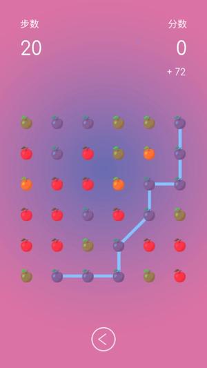 2、用手指点击第一个水果并滑动至另一个同类型水果,确保连线不超过两次转折且路径上无障碍物阻挡。